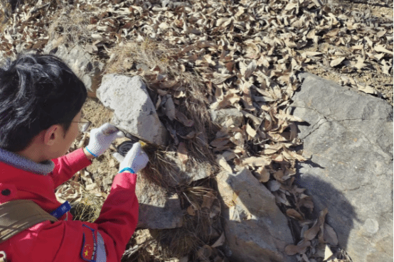心中有信念,脚下有力量。洛南县长岭钾长石矿核实项目地质填图、槽探、钻探工作繁忙有序地开展着。面对工期紧、交通不便、地质条件复杂等挑战,队员们始终保持“干一行,爱一行”的坚定信念,秉持着“高标准,严要求”的态度,全力以赴抢抓生产进度。在野外跑路线时,他们脚步坚实,穿梭于丛林荒野,饿了就吃几口随身携带的干粮,渴了就喝几口冰冷的矿泉水。他们不放过任何一个矿(化)点,团队成员之间紧密协作,一旦发现问题,立即共同商讨解决方案。项目负责人张勇直言:“工作区的地质条件复杂,冬季作业更是难上加难。但我们的项目成员很团结,大家心往一处想,劲往一处使,虽然辛苦,但看到项目取得的进展,心里就充满了成就感。”自2024年8月底开工至今,该项目组已完成1:2000地形测量9.5km2,1:10000地质修测7.3km2,1:10000水工环地质修测7.34km2,钻探编录1397.8m,老探槽清理3293.72m,采集基本化学样品1699件。