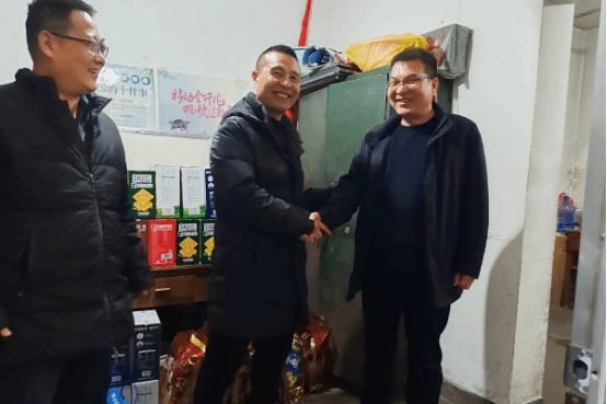 1月28日除夕夜,二二四队小区内灯笼高挂,彩灯亮堂,处处洋溢着浓浓的节日氛围,二二四队党委书记、董事长郭金锁带领224队物业管理中心党支部书记、主任孙卫,二二四队党群工作部、行政人事部部长方小龙一行,看望慰问坚守工作岗位的物业管理中心值班职工,向他们送去节日的祝福,致以新春的慰问。