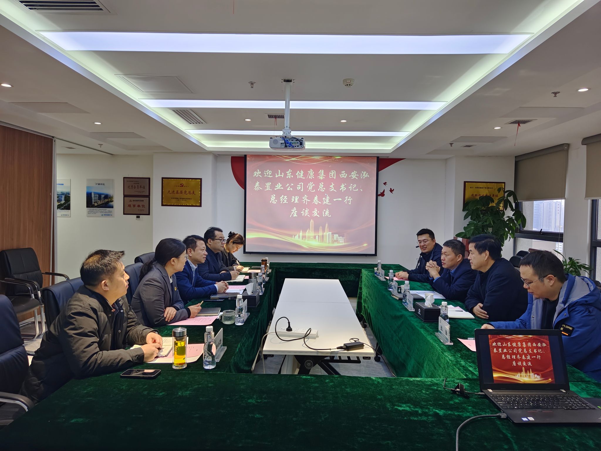 3月4日上午,山东健康集团西安泓泰置业有限公司(以下简称“山东健康”)党总支书记、总经理齐春建一行到中陕核健康产业进行业务座谈,健康产业党总支书记、董事长李来柱出席座谈会。