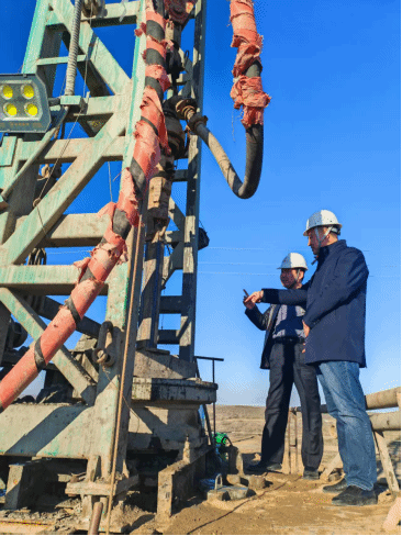 检查组一行深入施工现场,听取了项目组相关人员的工作汇报,并按照《钻探安全生产标准化检查表》检查内容对钻机塔架、避雷措施、泥浆池防护、上塔保护绳及安全警示标志等易发生安全事故的事项逐一排查,并提出整改措施。