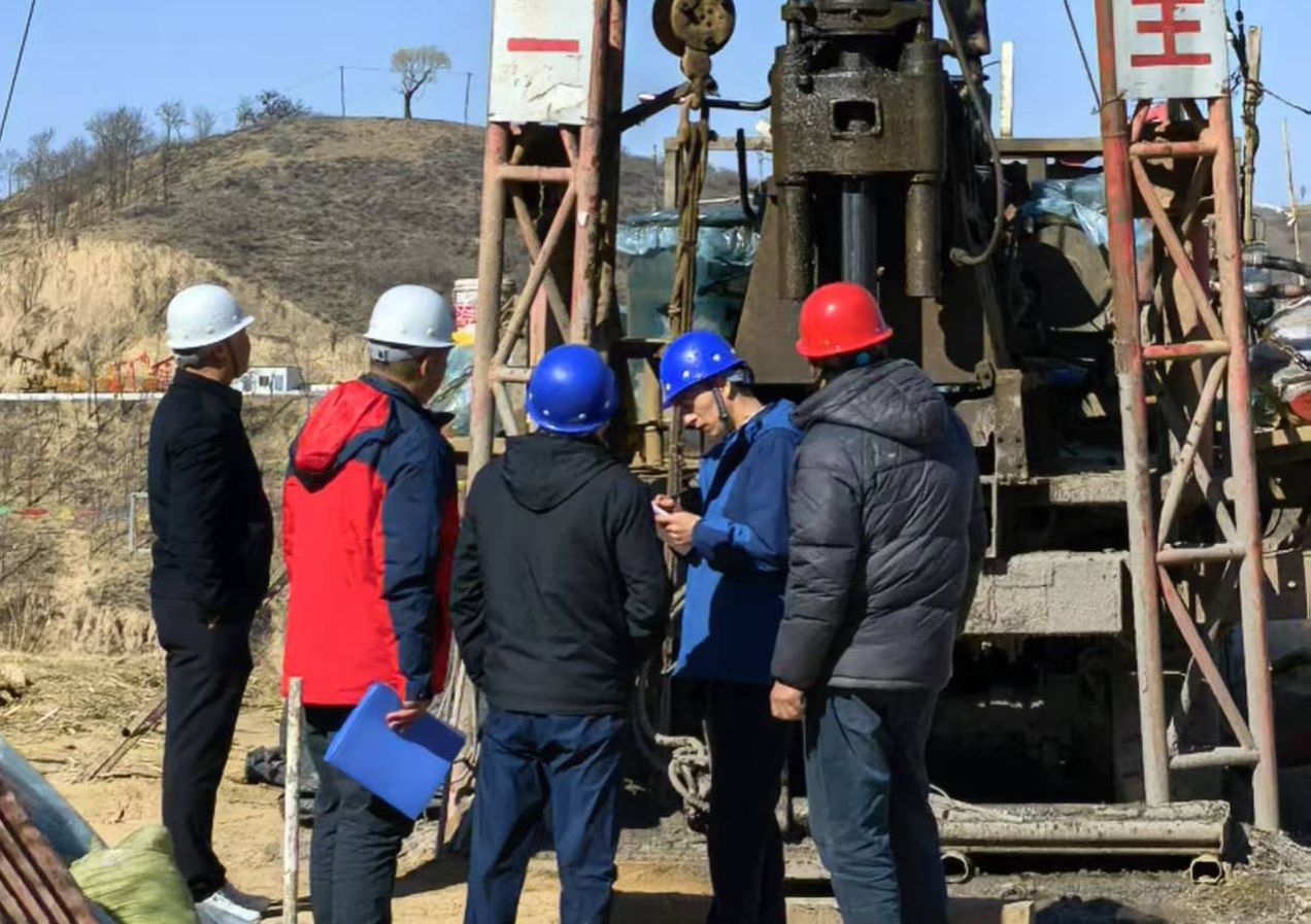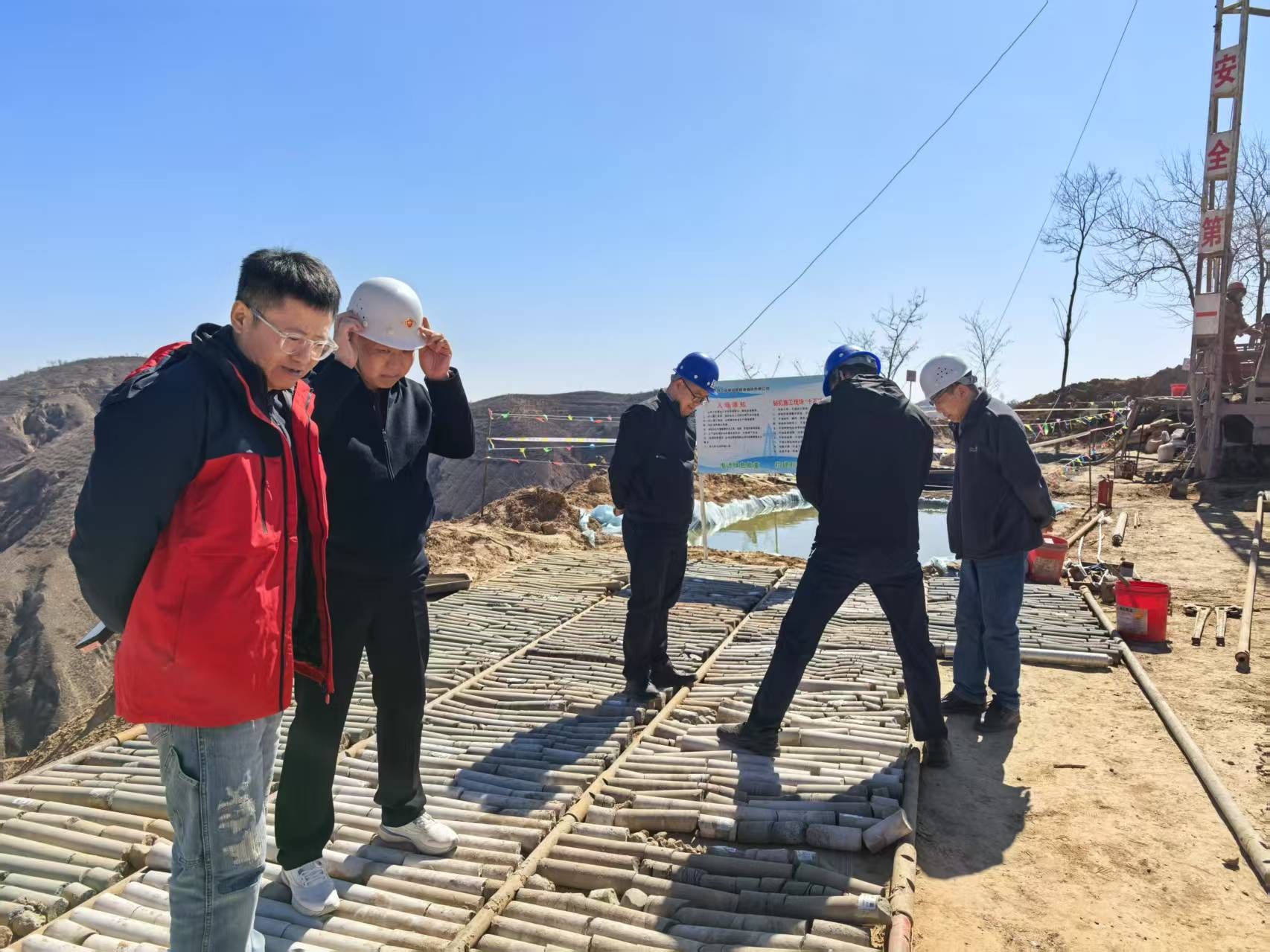 3月19-20日,中陕核集团公司安全环保部长郭建军、副部长郭科锋、地调院党委书记、执行董事孙涛、副总经理祁晓鹏和相关部门负责人一行到地调院陕北分公司子长矿区杨家山井田补充勘探项目进行安全环保消防综合检查。