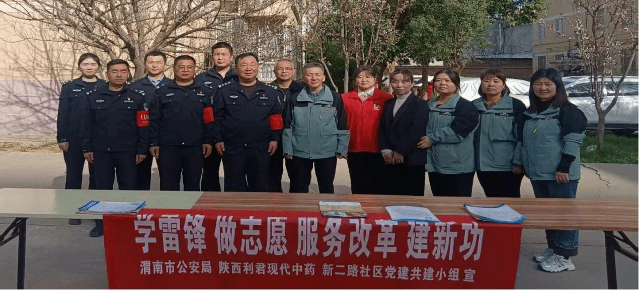 在第62个学雷锋纪念日来临之际,中陕核利君集团现代中药公司联合渭南市公安局及渭南市高新区新二路社区,于3月20日开展"学雷锋健康服务月"主题活动。活动以"传承雷锋精神,守护居民健康"为宗旨,通过健康咨询、便民服务等形式,将专业医疗资源与志愿服务送到群众家门口,让社区居民切实感受到社会关怀。