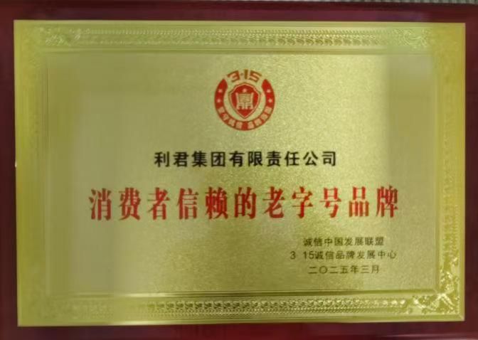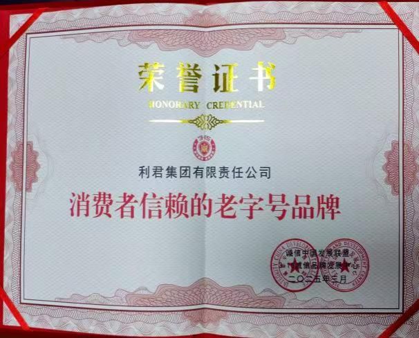 热烈祝贺利君集团荣获 “消费者信赖的老字号品牌”荣誉称号 --品质为根 诚信为本 百年品牌 匠心传承--