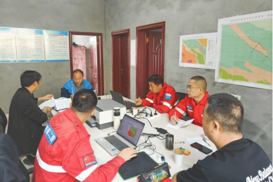 杨夏一行首先为各项目一线职工送去了大肉、蔬菜、水果和饮料等慰问品,认真查看了项目驻地环境,了解了职工日常生产、生活情况。随后检查组认真听取了各项目负责人关于项目概况、施工进度、阶段性成果、安全生产措施及后续计划的详细汇报。汇报结束后,检查组对项目进展、安全管理、现场作业、风险管控等方面开展全面检查,重点检查了安全生产各项资料及台账,并下发安全环保督导检查表。最后,慰问组奔赴野外一线,仔细考察工作区地形地貌与交通条件,抽检部分野外作业成果质量。针对检查中发现的项目建设、工作计划、安全生产等方面的问题,检查组与项目团队展开深入研讨,现场提出具体可行的解决方案与改进建议。