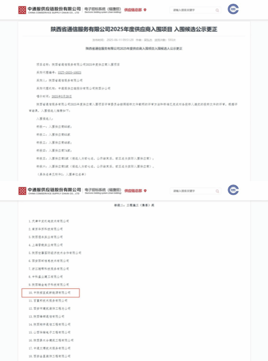 近日,中陕核宜威公司成功入围陕西省通信服务有限公司2025年度供应商名录。