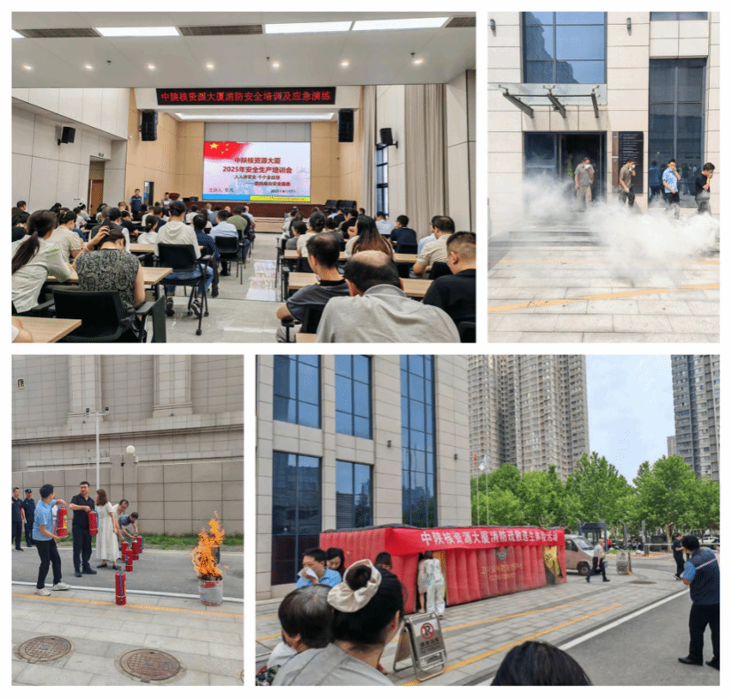 为进一步强化安全生产管理,提升职工消防安全知识储备与消防设施实操技能,6 月 17 日上午,二一四队组织员工积极参与由中陕核资源大厦物业主办的 “安全生产月” 消防安全培训及应急演练活动。二一四队副总经理冉军林全程参与此次活动。