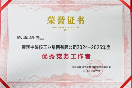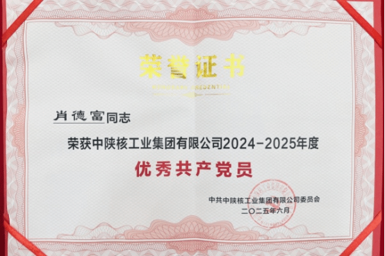 近日,中陕核集团党委表彰了2024-2025年度“两优一先”。二二四队中陕核工业集团测绘院有限公司党支部荣获中陕核集团“先进党支部”,二二四队党群工作部副部长陈维妍荣获中陕核集团“优秀党务工作者”,二二四队地质调查院党支部陈军,二二四队中陕核新材料有限公司党支部郑银龙、肖德富,二二四队测绘院党支部李青茹等4名同志荣获中陕核集团“优秀共产党员”荣誉称号。