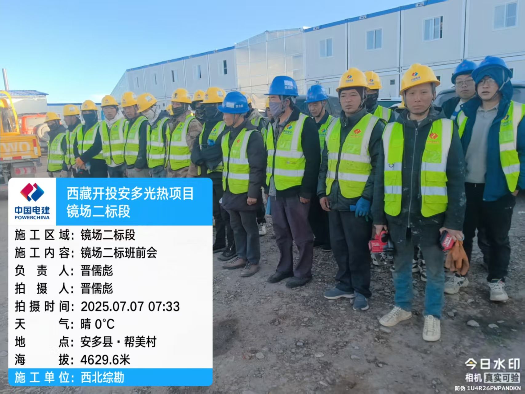 西藏开投安多县土硕100MW光热+800MW光伏一体化项目光热部分EPC总承包项目定日镜场建安工程II标项目由西北综勘新能源工程设计院承建,项目位于西藏那曲市安多县帕那镇东部约17.5km处,光热部分装机容量100兆瓦,场址海拔在4645米至4657米之间,是全球首个在4650米超高海拔、超低温度、极弱电网环境“三重挑战”下建设的光热电站。光热发电采用熔盐塔式技术路线,镜场总采光面积不小于80万平方米,储热时长不小于8h(以汽轮机额定效率折算等效储热8h),储热介质与传热介质均选用二元熔盐。项目采用先进的熔盐塔式光热技术,装机容量为100兆瓦,配置8小时的储热系统,通过1.6万面、80万平方米的定日镜将太阳光反射至吸热塔,使熔盐升温至560℃,再通过高温熔盐进行逆流换热,实现机械能向电能的转化,输出持续稳定的清洁能源。