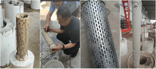 在西安交大电气学院实验室,邹海峰首先参观了可控冲击波项目实验,张琳详细汇报了项目进展以及取得的阶段性关键成果:该技术可精准作用于目标区域,成功使模拟砂岩铀矿靶块产生裂隙,且能在保障过滤器完好的情况下实现有效解堵,达到“解堵增隙”的试验预期。邹海峰现场观摩了PVC和金属过滤器靶块的实验过程,通过查看可控冲击波作用后的过滤器和靶块前后对比情况,充分肯定了该技术的解堵增隙效果。