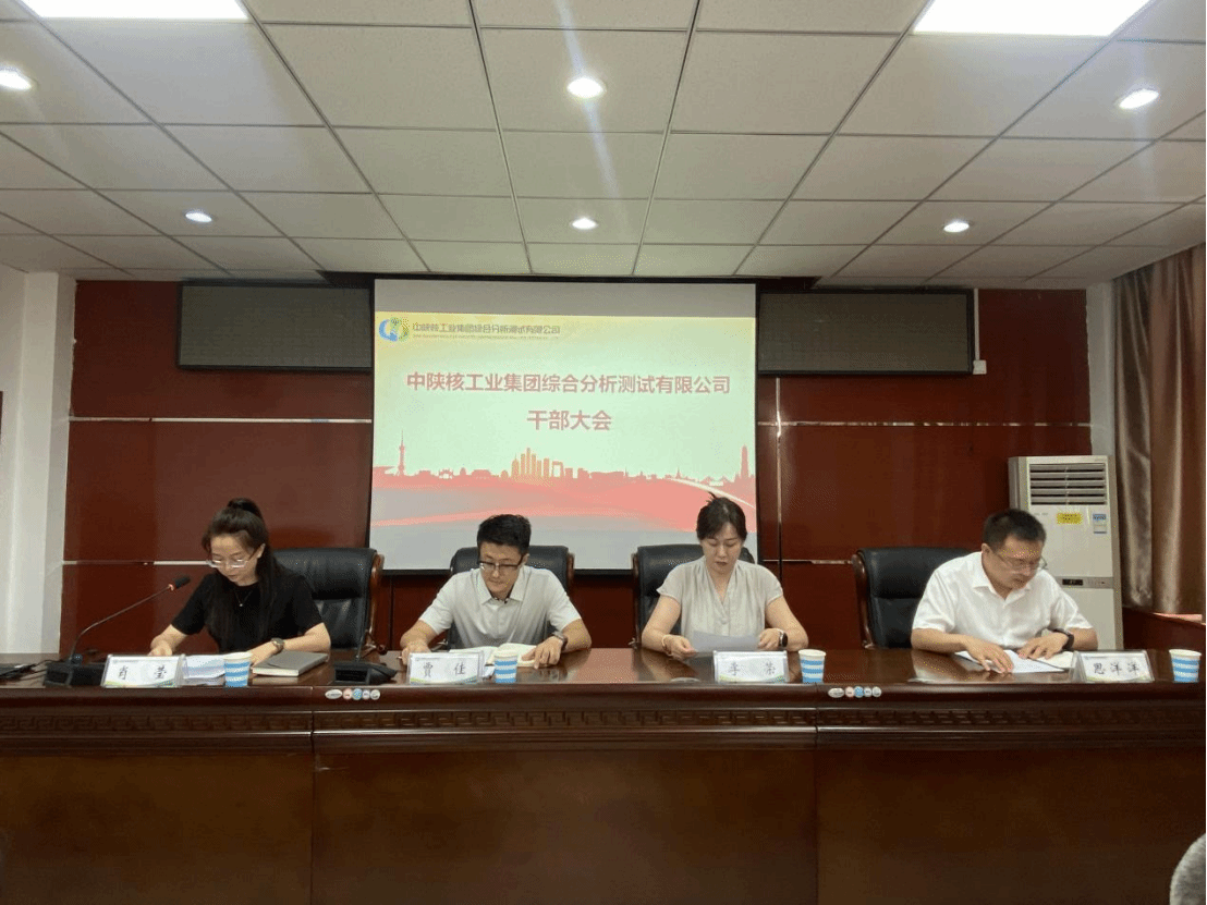 7月25日,中陕核测试公司召开干部大会。中陕核生态公司党委书记、董事长贾佳出席会议并讲话,党委委员、纪委书记李荣宣布任职决定,测试公司班子成员及全体干部职工参加会议。