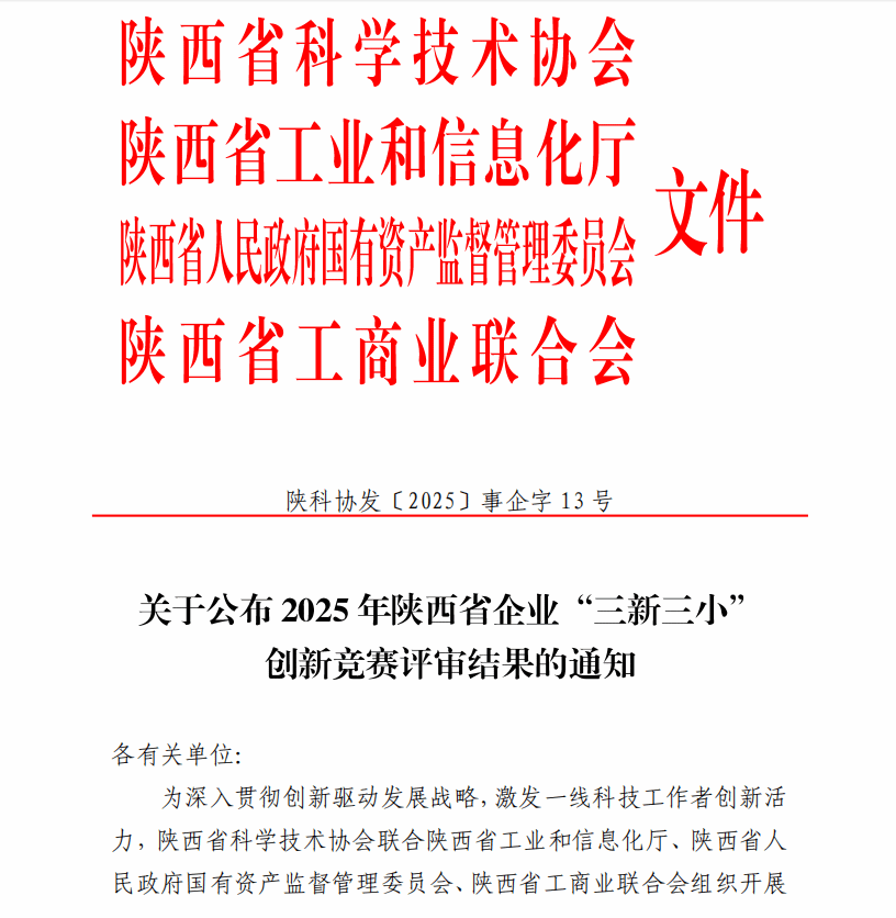 核盛科技喜获2025年陕西省企业“三新三小”创新竞赛三等奖