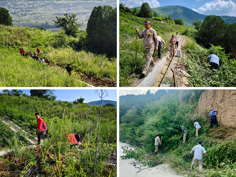 8月3日,魏巍、罗华国带队兵分两路奔赴现场,顶着烈日开展集中整改。工作人员携带铁锹、洋镐、镰刀等工具,分工协作推进整治,对两座尾矿库坝体及库区两侧的灌木杂草进行彻底清理,保障坝体结构稳定;对淤堵的排水沟实施清淤疏浚,确保排水畅通;修复受损的进库道路,确保应急通行顺畅;按规范补挂安全标识标牌,强化安全警示。