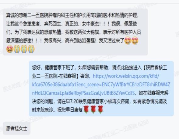 半年多的“双线作战”终于迎来了曙光。桂女士的肿瘤得到有效控制,身体指标稳步好转。更令人欣慰的是,她从自我封闭中走出,变得积极乐观,甚至成了病房里的“正能量”使者,鼓励着其他病友。出院那天,她紧紧握住护士长的双手,反复说着“谢谢你们,是你们让我知道,我不是一个人在战斗,你们既救了我的命,更救了我的心!”