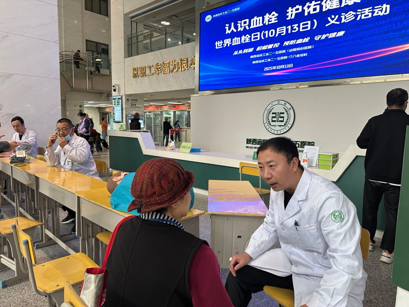 为提高公众对骨关节健康和血栓性疾病的认知,普及科学防治知识,在10月12日“世界关节炎日”和10月13日“世界血栓日”到来之际,陕西省核工业二一五医院于10月13日上午在门诊大厅举办大型联合义诊活动,吸引了众多市民前来咨询、就诊。