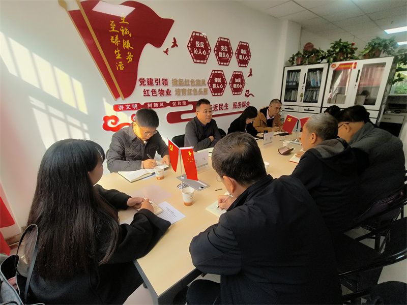 为深入贯彻新时代党的建设总要求,推动基层党建与生产经营深度融合,精准掌握基层党建实效与难题,10月30日上午,中陕核集团党委副书记、工会主席安敏,集团机关党委副书记、党委工作部(组织部)副部长治蕾一行,前往置业公司山水岭秀南区项目部,专题调研指导党建工作。置业公司党总支书记、执行董事陈海波,项目部及相关部门负责人、离退休支部书记、业主代表、社区工作人员参加座谈。