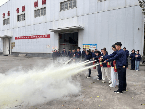 随后进行的实战演练环节组织严密、响应迅速。在应急疏散演练中,全体人员听从指挥、行动有序,展现出良好的应急反应能力。在灭火实操环节,张老师现场演示了干粉灭火器的正确使用方法,重点讲解“提、拔、握、压”四步操作要领。参训人员分组进行实操练习,体验扑救初起火灾的过程,切实提升了灭火技能和实战能力。