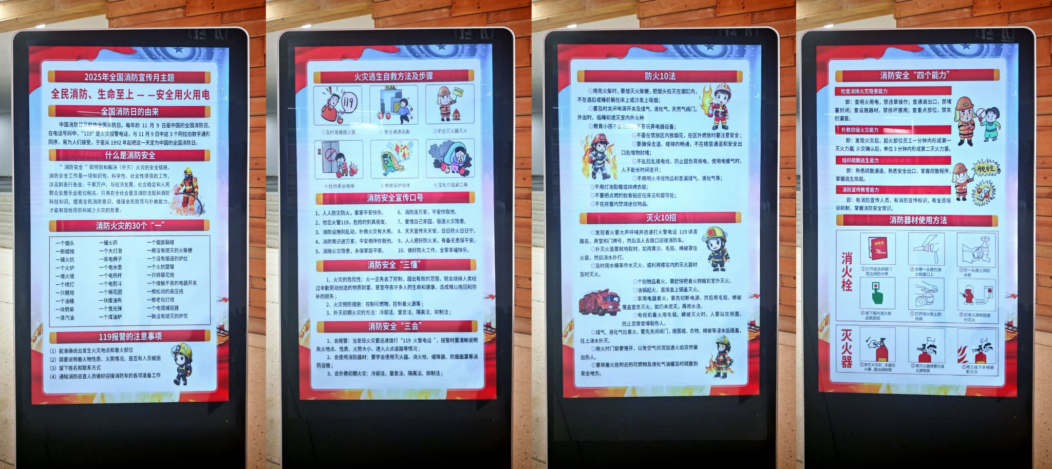 同时,在办公楼大厅等公共区域的显著位置,主题横幅和宣传海报共同构成了视觉宣传矩阵,以最直接的方式将消防安全知识传递给每一位员工,在点滴之中强化了安全意识,营造了“抬头即见、驻足即学”的常态化宣传氛围。