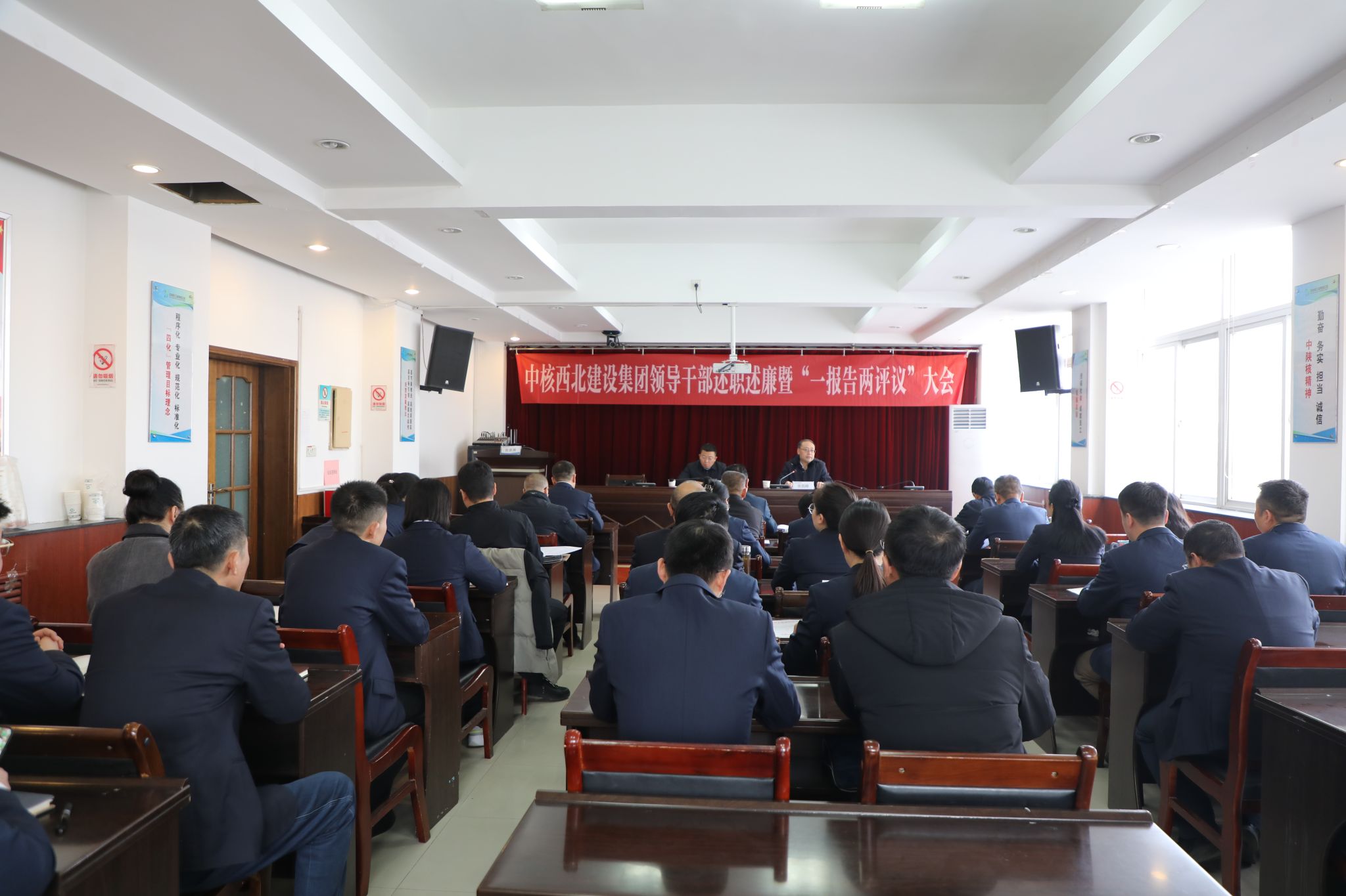 按照中陕核集团基层单位目标责任考核及领导班子考核评价工作,12月30日,中陕核集团党委委员、副总经理赵铜飞带领第三考核组成员对西北建进行2025年度目标责任考核及领导班子考核评价工作。集团党委宣传部部长张昆峰主持会议,西北建领导班子成员、外部董事、各部门及子公司负责人,职工代表参加会议。