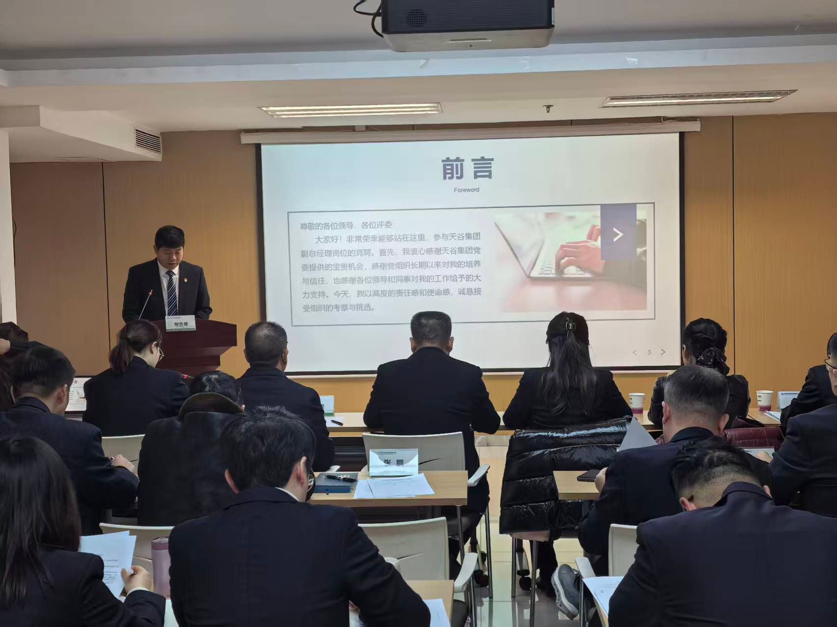 为深入贯彻落实经理层契约化管理改革部署,全面提升天谷集团管理效能和经营业绩,充分激发企业内生动力与创新活力,2026年1月8日下午,中陕核天谷集团组织召开副总经理竞聘大会。集团公司党委工作部(组织部)部长刘晶、纪委副书记、纪委工作部部长、综合室主任赵明学、人力资源部部长郭飞,天谷集团领导班子成员、中层干部及职工代表共30人出席会议。