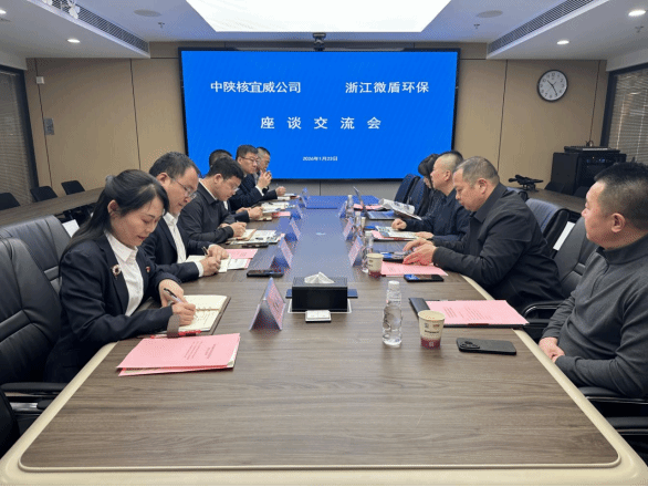 1月23日,浙江微盾环保科技有限公司董事长陈伟星到中陕核宜威公司座谈交流,宜威公司董事长何厚锦出席座谈。双方围绕固废处理政策导向、“摩擦热”技术、区域市场战略布局等内容深入磋商,并正式签署战略合作框架协议,携手拓展环保新赛道,筑牢绿色发展新根基。