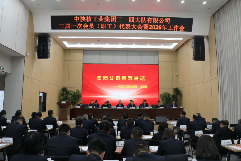2026年1月27日,中陕核工业集团二一四大队有限公司三届一次会员(职工)代表大会暨2026年工作会隆重召开。会议全面总结2025年发展成果,系统部署2026年重点任务,进一步统一思想、凝聚共识,为奋力开启“十五五”高质量发展新征程奠定坚实基础。集团公司副总经理岳荣昌、发展规划部部长刘洪敏和外部董事到场指导,公司47名正式代表、8名列席代表参加本次会议。
