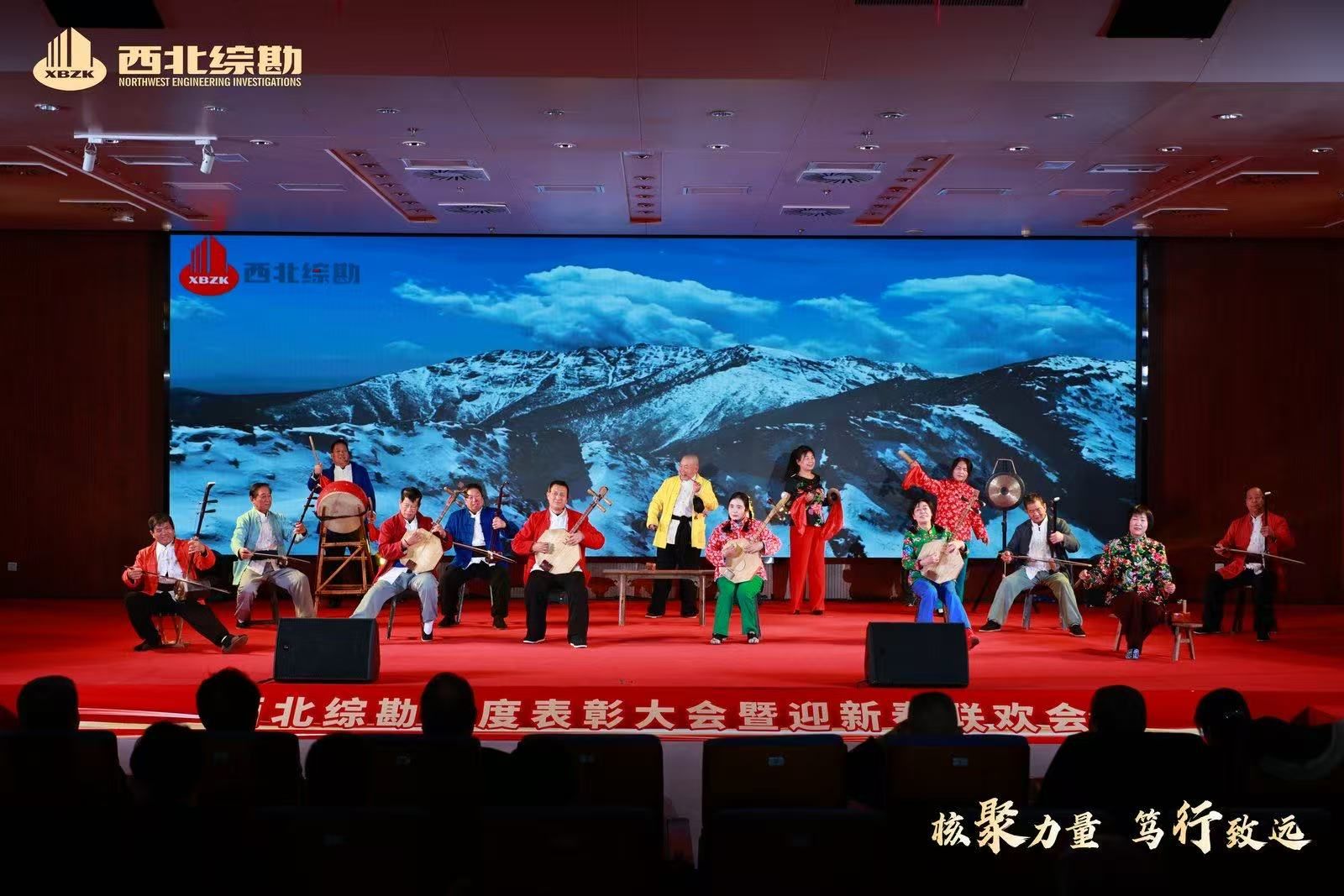 各部门职工自编自导自演的原创节目,涵盖了老腔、歌曲、舞蹈、朗诵等多种艺术形式, 节目内容紧扣院发展历程与职工工作生活,传统与潮流交融、深情与活力兼具,展现出西北综勘人对未来的坚定信心和昂扬向上的精神风貌。