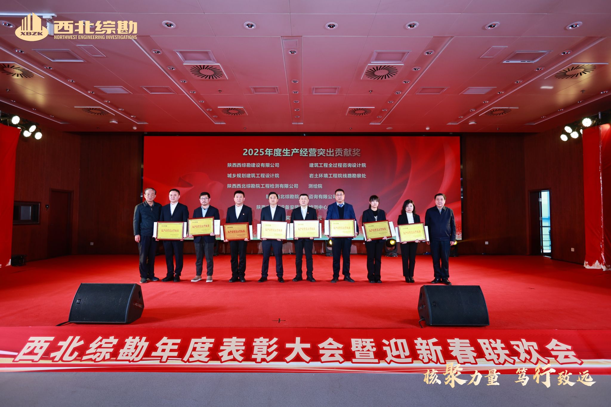 2026年2月3日下午,西北综勘举办“核聚力量 笃行致远”年度表彰大会,共同回顾发展成果,发布了《西北综合勘察设计研究院1952-2025年鉴》,表彰了2025年度各类先进集体和个人,凝聚奋进力量,为新一年高质量发展吹响冲锋号角。陕西省慈善协会副会长张文亮,陕西省城市燃气热力协会原党支部书记刘亚明,陕西省建设工程造价协会党支部书记顾群受邀参加了会议。