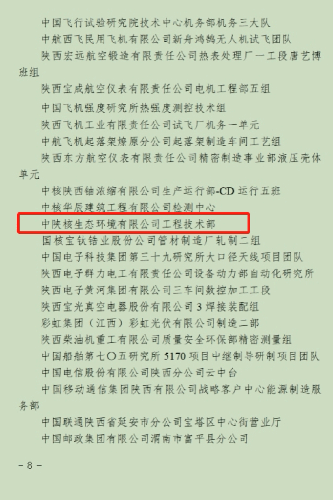 此次荣获陕西省国防系统“工人先锋号”,是对部门及公司坚持创新驱动、服务国家战略的高度认可。面向“十五五”,将以此为起点,持续深耕核心技术,紧密围绕公司高质量发展目标,以更优业绩擦亮生态环保品牌,为集团打造国内一流生态环保企业、助力美丽中国建设贡献更大力量。