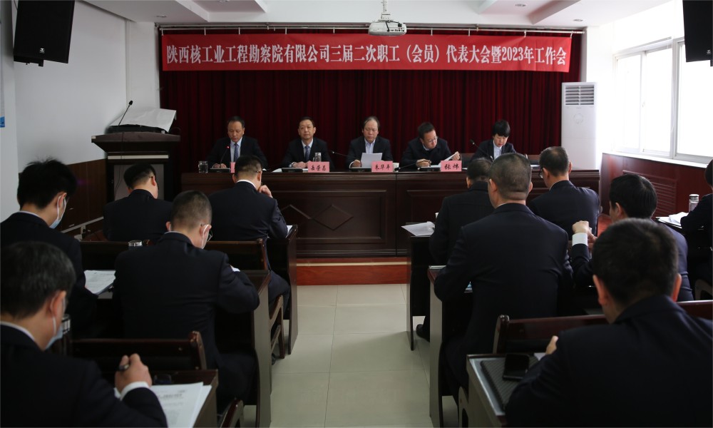 2023年2月1日,陕西核工业工程勘察院有限公司三届二次职工(会员)代表大会暨2023年工作会隆重召开。公司职工代表、外部董事、领导班子成员、高层管理者及中层干部参加了本次会议。集团公司党委副书记、总经理朱华平以及集团综合办公室主任张炜应邀出席了会议。