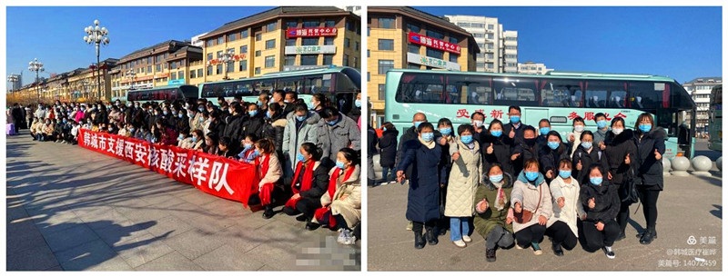 12月19日上午,“组建核酸采样预备队、加入全省抗疫应急医疗队”的倡议,迅速传遍了中陕核医疗集团韩城医疗中心各院所。“我家负担轻,我可以”、“我有经验,我优先”,大家纷纷响应、踊跃报名。12月20日中午,韩城医疗中心选派的第一批14名作风硬、业务强的医护人员就随韩城市支援西安核酸采样队赶赴一线开展抗疫工作。当天下午6点,医护人员就被安排到疫情最严重的某封控小区分为两组开展入户核酸采样工作,高强度的工作一直持续到第二天凌晨6点,顺利完成某封控小区210人次的采样任务。