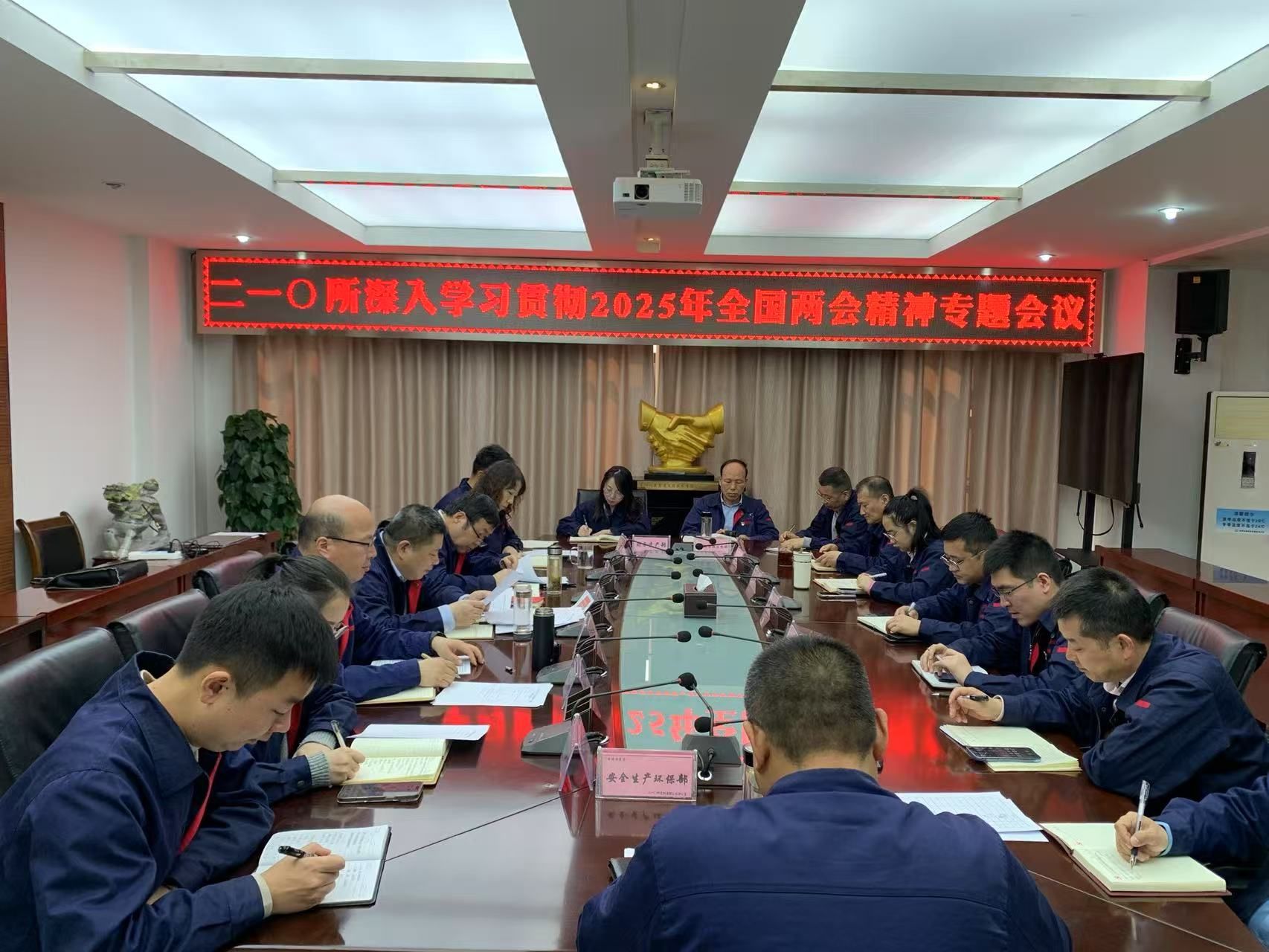 会上,李伟带领大家学习贯彻习近平总书记在2025年全国两会期间的重要讲话精神,国务院总理李强作的2025年政府工作报告,并对贯彻落实工作进行了全面部署。他要求二一〇所要以此次专题会议为契机,在公司党员干部队伍中迅速掀起学习宣传贯彻全国两会精神的热潮,进一步深刻领悟“两个确立”的决定性意义,增强“四个意识”、坚定“四个自信”、做到“两个维护”,推动全国两会精神学习入脑入心,将学习两会精神与实际工作紧密结合,在公司改革发展阶段中找准自身定位,积极履行职责,确保完成一季度各项工作任务,实现一季度经济运行“开门红”。