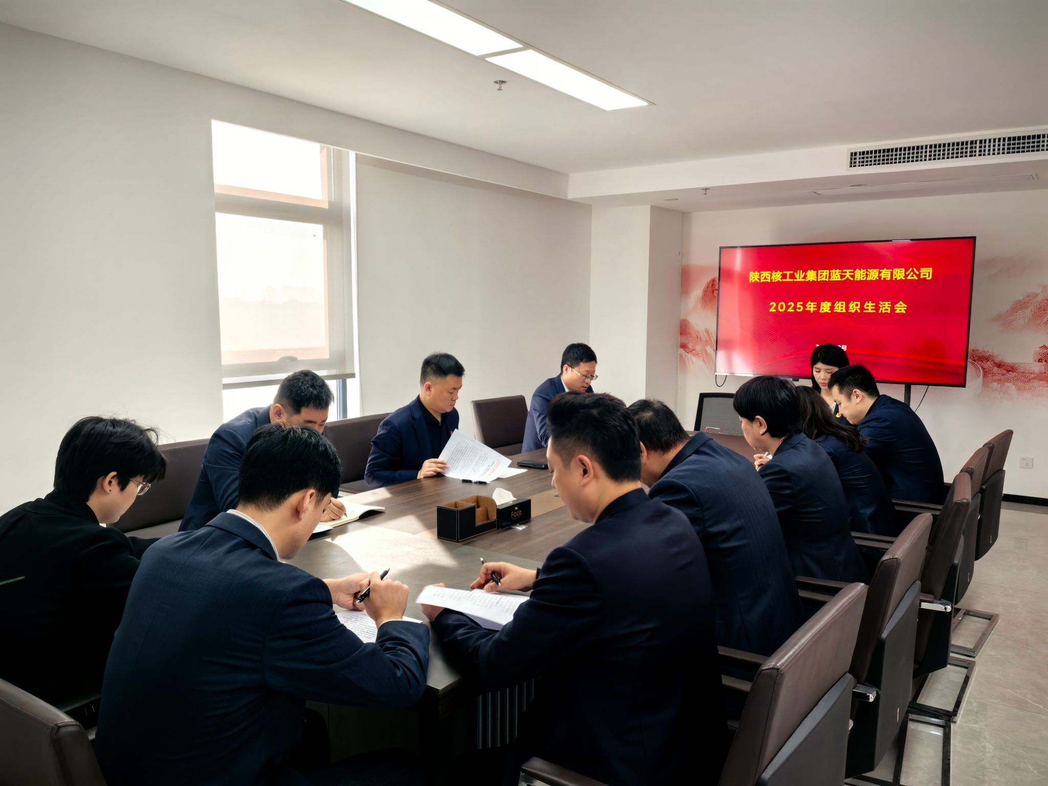 3月12日,蓝天能源党支部以党员大会形式召开2025年度组织生活会并开展民主评议党员工作,公司全体党员参会,党支部书记、董事长姚志格出席会议并作点评讲话,会议由支委委员、总经理、工会主席康飞主持。