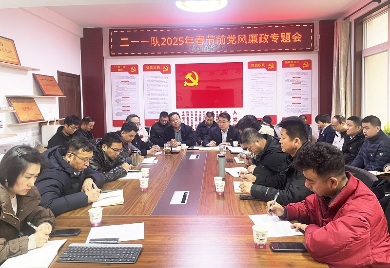 1月24日上午,二一一队召开了春节节前党风廉政专题会。二一一队党委书记、董事长任斌,党委副书记、总经理刘旭及其他领导班子、全体党员、入党积极分子30余人参加了会议,公司党委委员、纪委书记魏东主持会议。