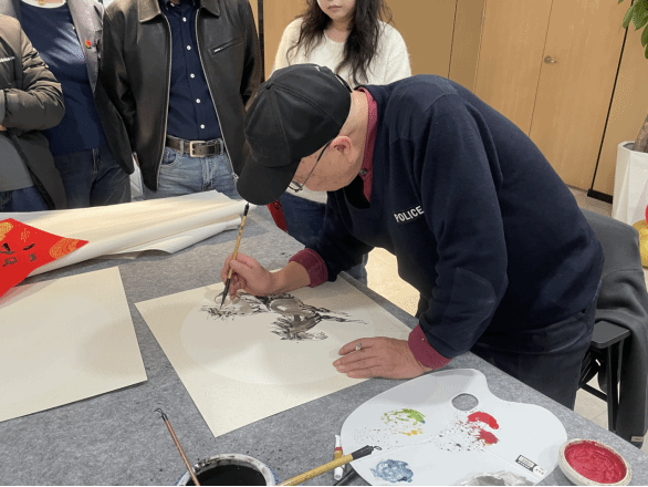 职工们纷纷驻足观赏、精心挑选,或请老师书写心仪联句,或欣赏画作、合影留念。手捧墨迹未干的春联与画作,大家脸上洋溢着喜悦与期待:“手写的春联更有年味,老师画的骏马更有精神!”“这一马当先的好彩头,今年工作一定干劲十足!”活动现场秩序井然,暖意融融,成为冬日里一道亮丽的风景线。