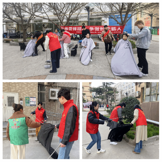 然后,由辖区爱心企业为社区老人义务剪发,其他志愿者们身着红马甲,手持清洁工具,以饱满的热情投入社区垃圾清理工作中。他们分工明确、协同作战,在小区里仔细搜寻着每个角落的垃圾。无论是烟头、废纸,还是塑料瓶、包装袋,都逃不过他们的“火眼金睛”。志愿者们不怕脏、不怕累,弯腰捡拾、分类装袋,用实际行动诠释了雷锋精神中的无私奉献和勤劳勇敢。在他们的努力下,小区环境焕然一新,居民们纷纷投来赞许的目光。