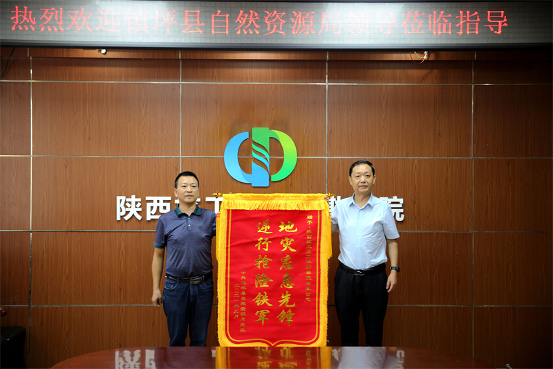 9月15日,安康市镇坪县自然资源局党组成员、县地质灾害防治监测站站长梁伦俊一行代表镇坪县自然资源局将一面印有“地灾应急先锋 逆行抢险铁军”的锦旗及感谢信送到中陕核工勘院,对中陕核工勘院在安康市镇坪县“平战...