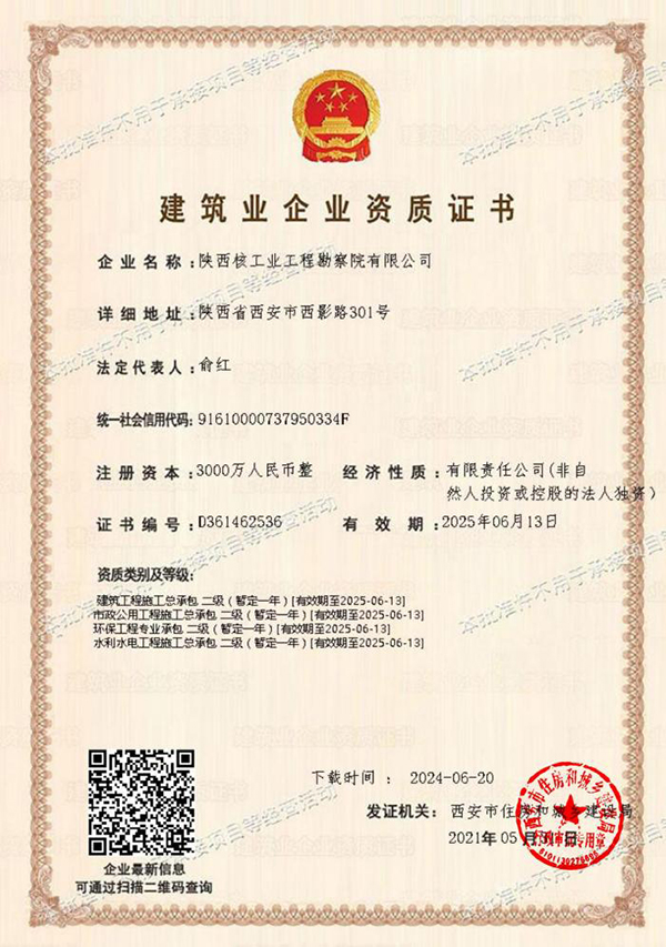 近日,经陕西省住房和城乡建设厅批准,工勘院获批建筑工程、市政公用工程、水利水电工程三项施工总承包二级资质,及环保工程专业承包二级资质。 四项资质的成功升级是工勘院推动产业延链补链强链的重要举措,不仅彰显了工勘院在施工领域的综合实力,...
