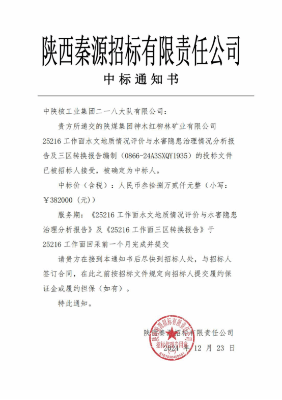 近日,我公司在地质技术服务业务拓展方面斩获佳绩,成功中标陕煤集团神木红柳林矿业有限公司“25216工作面水文地质情况评价与水害隐患治理情况分析报告及三区转换报告编制”项目。这一突破不仅是公司在地质技术服务领域的重要里程碑,也为公司“钻探+综合”战略布局注入了强大动力。在此次激烈的竞标过程中,我公司凭借精湛的技术、专业的团队和丰富的行业经验脱颖而出。中标此项目,既是对公司综合实力的高度认可,也是对全体技术人员辛勤付出的最好回馈。...