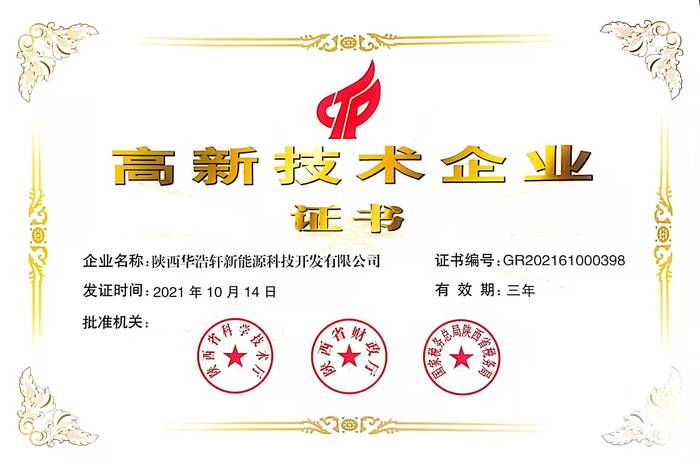 根据《高新技术企业认定管理办法》、《高新技术企业认定管理工作指引》等相关规定,在经过各级审核以及专家评审之后,华浩轩公司于近日顺利通过了2021年第一批国家高新技术企业的审核认定,获得由陕西省科技厅、陕西...