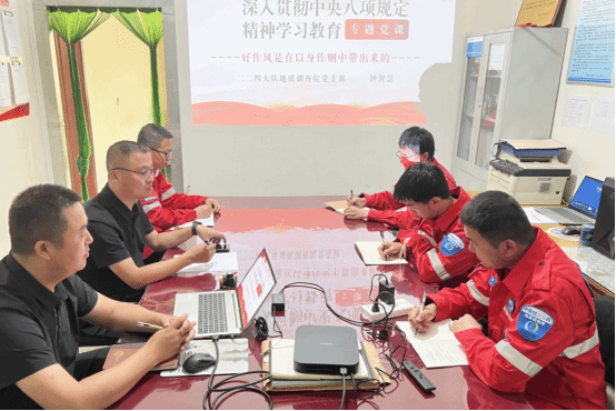 5月14日至15日,中陕核二二四队地质调查院党支部书记、院长钟智慧一行深入略阳县硖口驿铜多金属矿普查项目,为一线党员做深入贯彻中央八项规定精神学习教育专题党课,并检查指导工作。二二四队地质调查院副院长李鹏陪同。 会上,钟智慧领学了学习贯彻习近平总书记关于深入贯彻中央八项规定精神学习教育的重要讲话和重要指示精神。随后,钟智慧以“好作风是在以身作则中带出来的”为主题,讲授深入贯彻中央八项规定精神学习教育专题党课。...