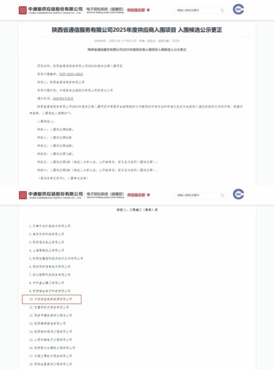 近日,中陕核宜威公司成功入围陕西省通信服务有限公司2025年度供应商名录。 在通信行业供应商遴选竞争白热化的市场环境下,宜威公司历经多轮严格的资质审查、技术评估、综合考核,最终以行业领先的技术创新能力、优质的产品服务体系以及AAA级企业信用评级的卓越表现,从近百家竞标企业中脱颖而出。这一里程碑式成果,不仅是对宜威公司在新能源与通信技术融合领域创新实践的高度认可,更为后续在数据中心储能项目等核心业务板块的深度合作开辟了新赛道,...