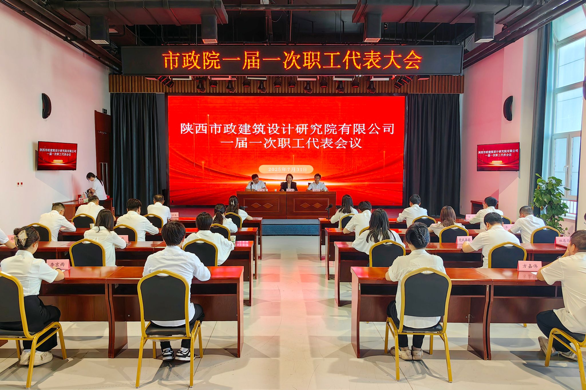 2025年7月31日,中陕核市政院一届一次职工代表大会在庄严的国歌声中隆重召开。本次大会应到职工代表30人,实到职工代表24人,符合法定人数。会议分为预备会议和正式会议两个阶段,圆满完成各项既定议程。预备会议:夯实民主基础下午14时,大会预备会议率先召开,会议筹备小组成员周玮主持会议。会议听取并审议通过了《一届一次职工代表大会代表资格审查报告》,确认全体代表资格有效。经全体参会代表无记名投票,选举产生由王勇、周玮、...