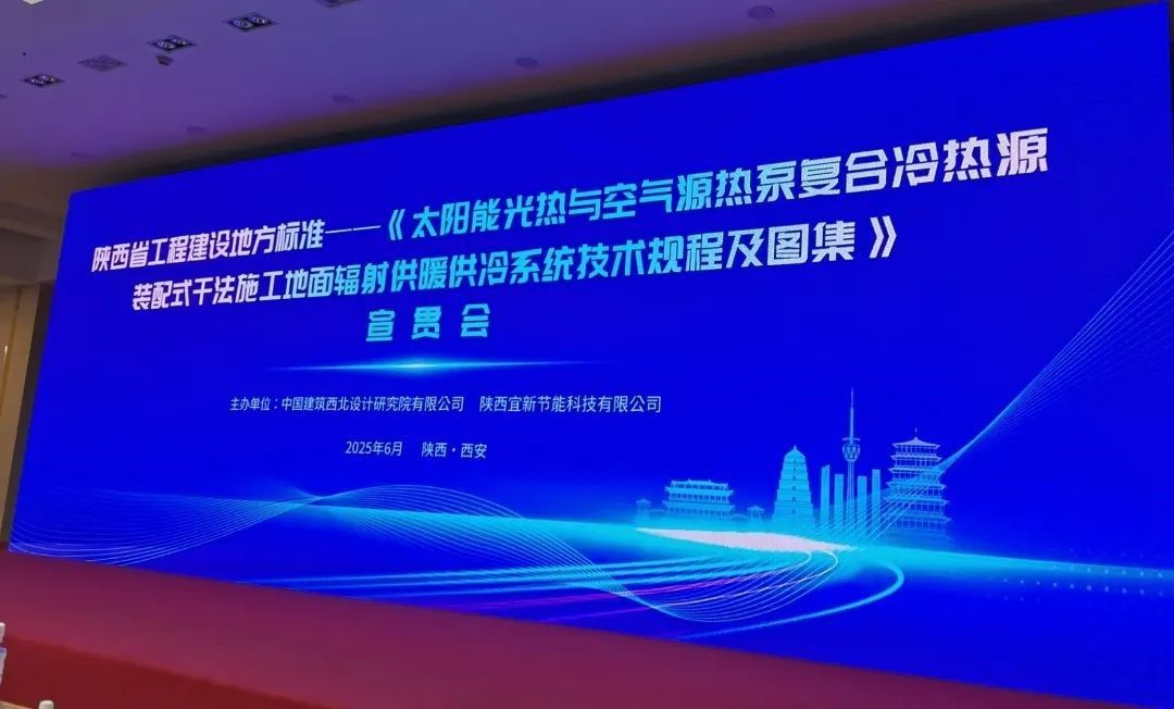 近日,由中陕核西北综勘参与编制的陕西省工程建设地方标准《太阳能光热与空气源热泵复合冷热源装配式干法施工地面辐射供暖供冷系统技术规程》及配套图集宣贯会在西安市丈八宾馆成功举办。此次宣贯会是以太阳能光热技术为核心,致力于光热、光电联供、装配式干法施工地暖、辐射供冷及建筑节能设备的研发、生产、服务于一体的技术宣贯活动。据我院编制人员介绍,该技术已在澄城县保障房等项目成功应用,实测数据显示:综合能效比达3.8以上,...