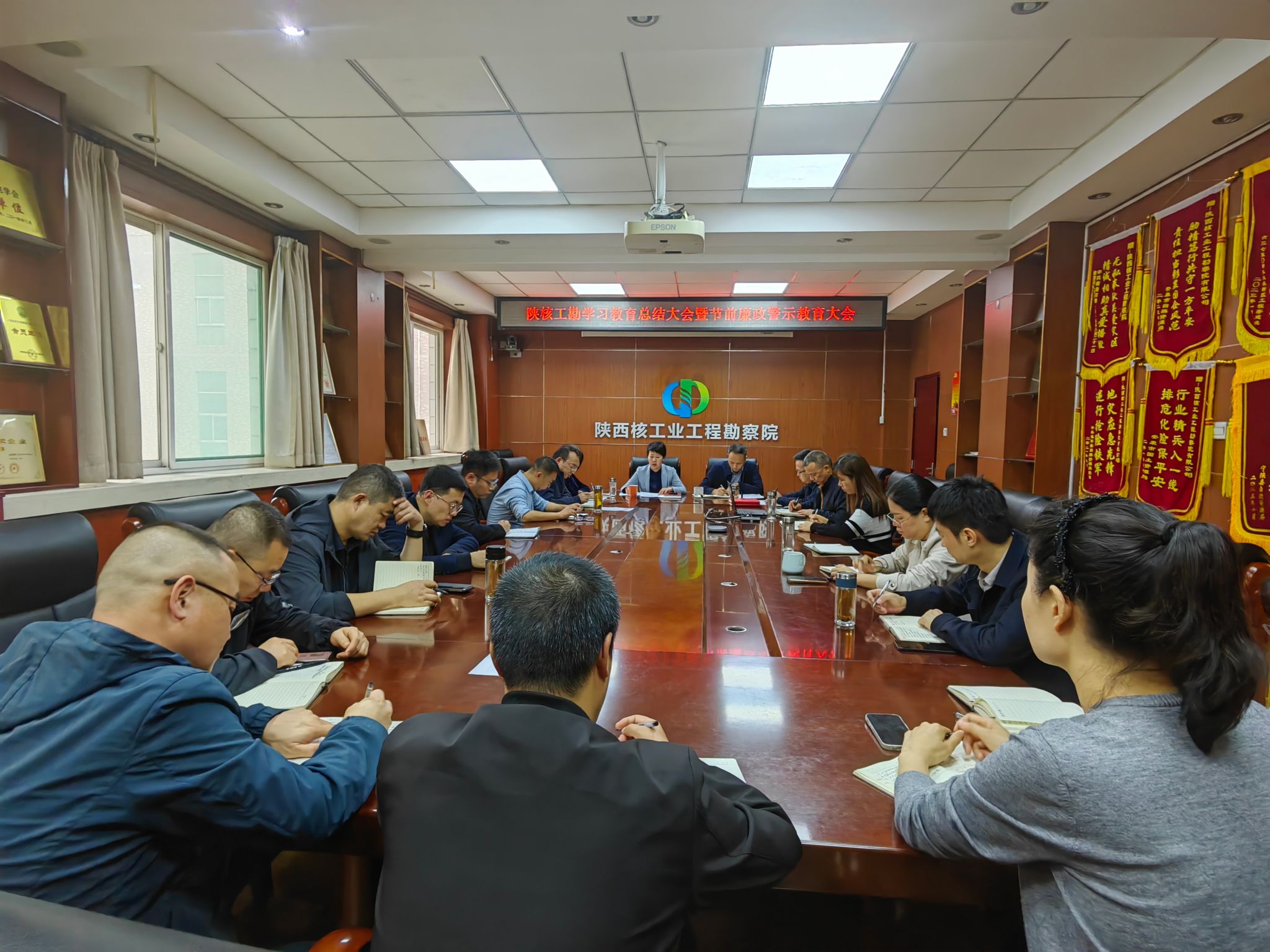 9月28日下午,陕核工勘召开深入贯彻中央八项规定精神学习教育总结大会暨中秋国庆节前廉政警示教育大会。会议由党委副书记、总经理郑颖悟主持,两级领导班子成员及全体党员参加会议。会议集中学习了习近平总书记关于锲而不舍落实中央八项规定精神的重要讲话精神,中、省党的建设工作领导小组会议精神,对陕核工勘深入贯彻中央八项规定精神学习教育进行了总结,通报了中、省纪委公开通报的违反中央八项规定精神典型案例,安排部署了陕核工勘中秋国庆期间纠“...