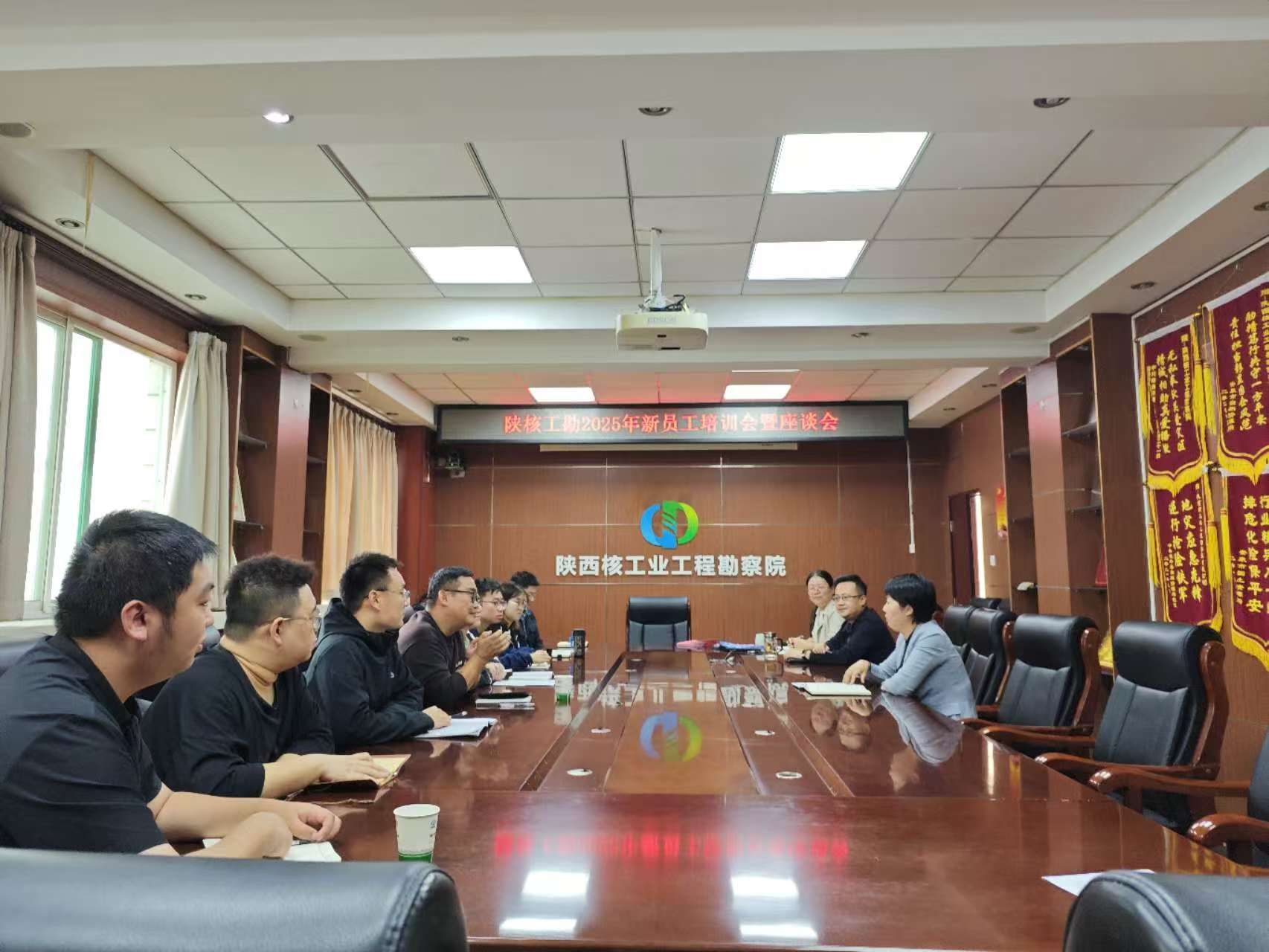 为进一步加强人力资源管理,帮助新员工更快融入陕核工勘,打造和谐、团结、向上的职工队伍。9月29日,陕核工勘组织召开新员工培训会暨座谈会。领导班子成员、2025年新入职员工、师带徒团队、各管理部门负责人参加了会议。培训会上,各管理部门负责人详细介绍了陕核工勘的基本情况、管理制度、日常工作要求、安全生产注意事项,新入职员工集中观看了廉政警示教育片,还开展了师带徒活动,签订了《师带徒协议》。座谈会上,新员工纷纷畅谈了入职以来的收获及感受,...