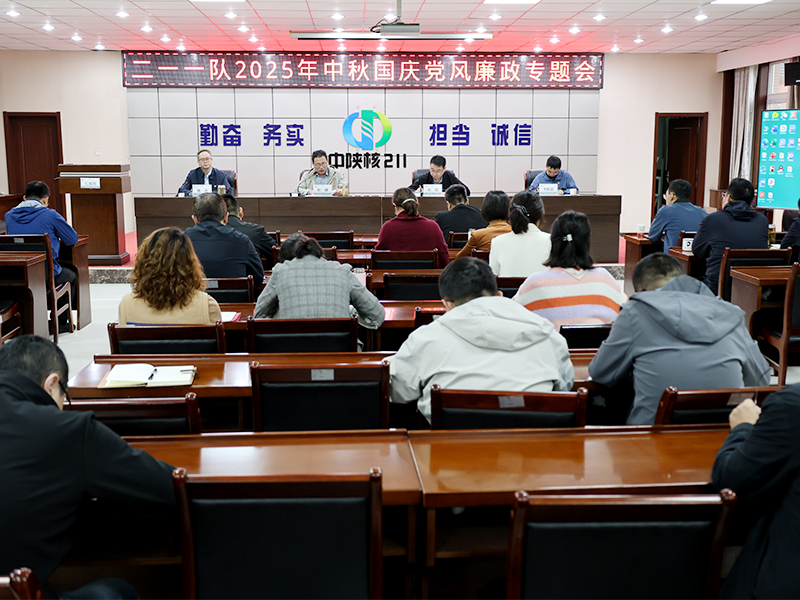 为深入贯彻落实中央八项规定及其实施细则精神,持之以恒纠“四风” 树新风,9 月 28 日上午,中陕核二一一队在四楼大会议室召开 2025 年中秋国庆节前党风廉政专题会。二一一队领导班子成员、全体党员及入党积极分子 30 余人参加,二一一队党委书记、董事长任斌出席并讲话,党委委员、纪委书记魏东主持会议。会上,任斌领学了习近平总书记关于全面从严治党的重要论述。党委副书记、总经理刘旭传达中共陕西省纪委办公厅《2025年中秋、...