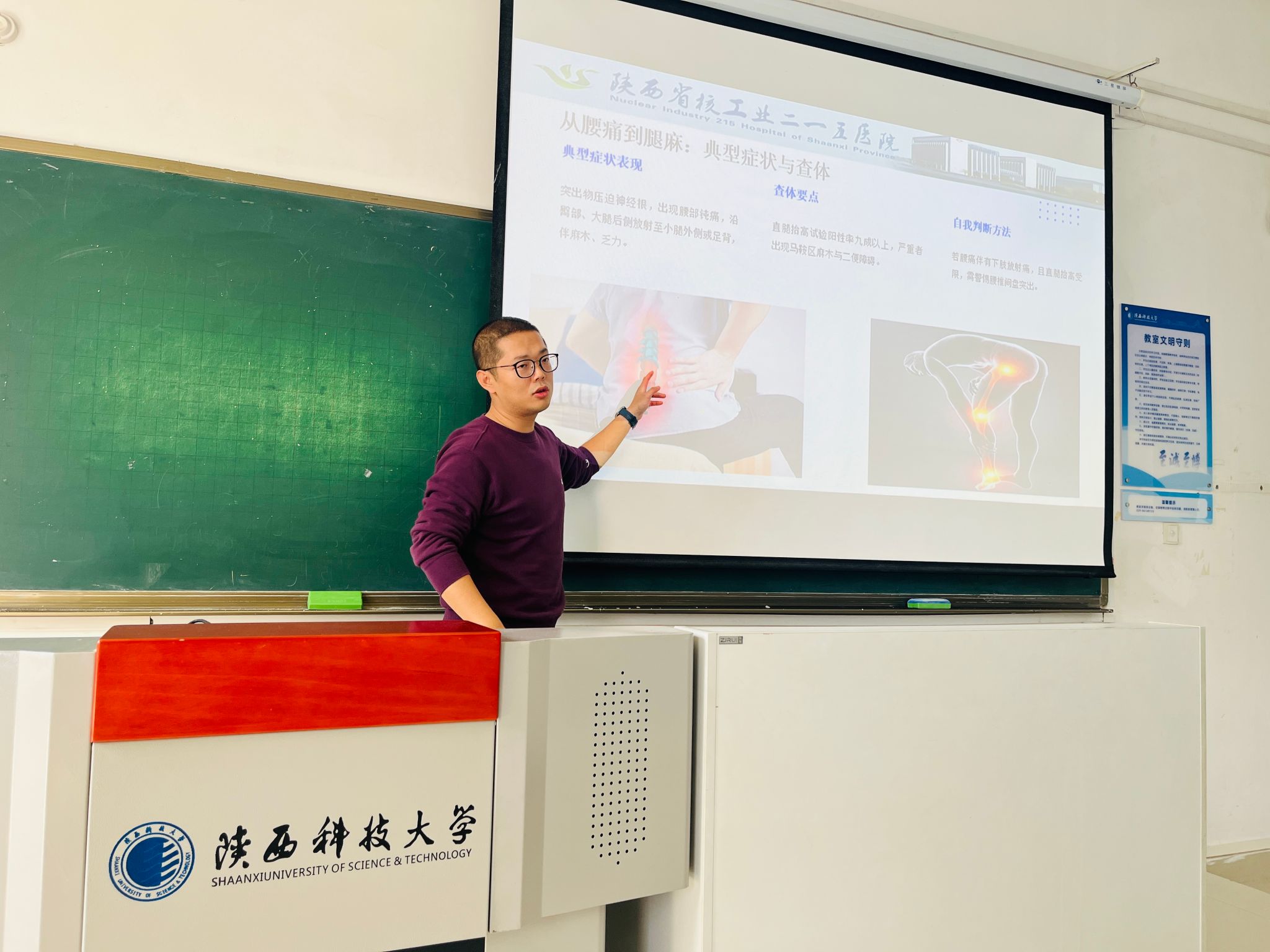 为助力全民健康水平提升,积极履行公立医院社会责任,促进医学知识普及与跨学科协同创新。近日,陕西省核工业二一五医院组织院内省级临床重点专科——骨科专家团队走进陕西科技大学,开展以“挺起脊梁——骨外科常见病知识科普”为主题的“医学+设计”跨界健康科普活动。活动首站在陕西科技大学设计与艺术学院举行,产品设计专业高静老师担任主持,二一五医院脊柱外科主治医师朱伟东担任主讲。讲座中,朱伟东医生结合丰富的临床影像资料与典型病例,...