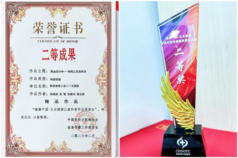 近日,由中国非处方药物协会信息传播工作委员会主办的“健康中国——大众健康公益科普作品展演会”圆满落幕。陕西省核工业二一五医院儿科选送的科普视频《黄金四分钟——海姆立克急救法》凭借专业的内容与创新的呈现形式,从众多参评作品中脱颖而出,荣获大会二等奖,并被授予“精品作品”称号。该作品由我院护理部、融媒体中心及儿科护理团队精心创作,紧扣日常生活中高发的异物卡喉紧急场景,以通俗易懂的语言和生动直观的演示,清晰拆解海姆立克急救法的操作步骤与核心要点。...