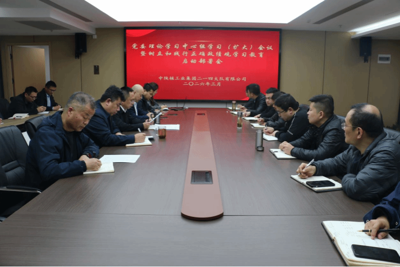 为深入学习贯彻习近平总书记关于树立和践行正确政绩观的重要论述,全面落实中央、省委、省国资委及集团公司党委部署要求,3月13日下午,中陕核二一四队在11楼会议室召开党委理论学习中心组学习(扩大)会议暨树立和践行正确政绩观学习教育启动部署会。公司党委书记、董事长付星主持会议并讲话。 会议开始,付星率先领学《领导干部要牢固树立正确政绩观——习近平同志在浙江省委党校2004年秋季开学典礼上的讲话摘编》,带领全体参会人员重温经典论述,...
