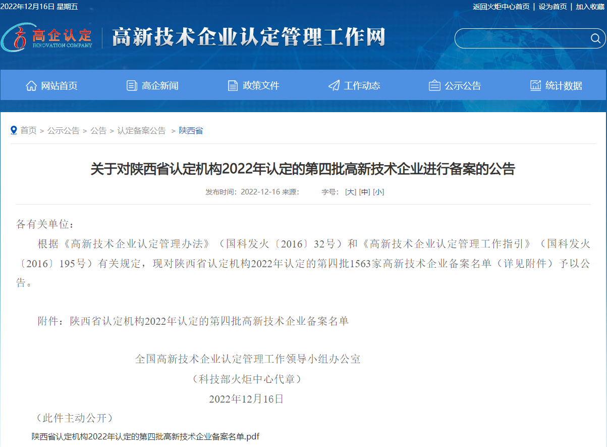 2022年12月16日,国家高新技术企业认定管理工作网对外公布了“陕西省认定机构2022年认定的第四批高新技术企业备案名单”,中陕核宜威新能源有限公司(以下简称“宜威公司”)顺利通过高新技术企业备案。 近年来,宜...